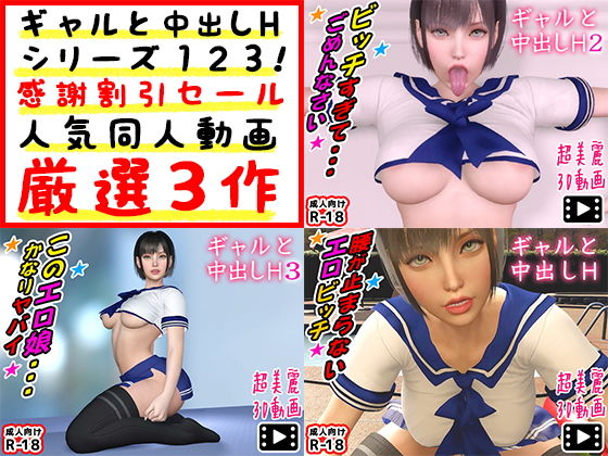 - タイトル:ギャルと中出しHシリーズ123!感謝割引セール人気同人動画厳選3作